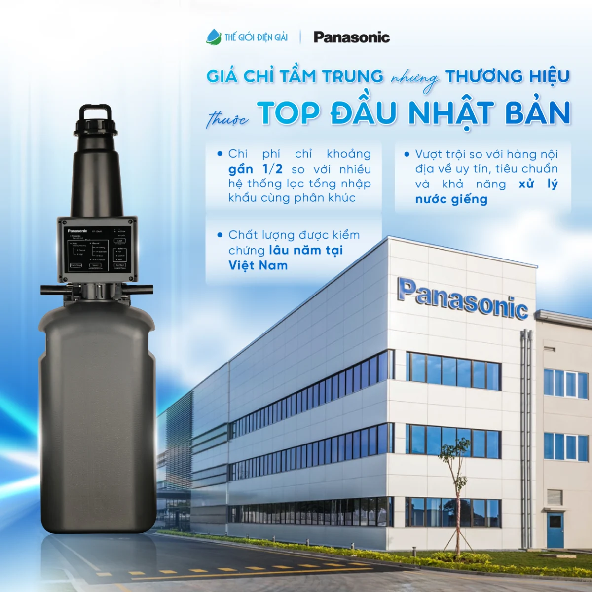 Bên cạnh chất lượng sản phẩm, Panasonic còn sở hữu hình ảnh thương hiệu chuẩn chỉnh, minh bạch thông tin kỹ thuật, tài liệu và ứng dụng công nghệ được công bố rõ ràng trên các kênh truyền thông chính thống, với quy trình kiểm duyệt nghiêm ngặt trước khi đến tay người tiêu dùng. Đây chính là giá trị khác biệt cốt lõi giúp Panasonic FP-15AA1 trở thành lựa chọn đáng tin cậy cho những gia đình tìm kiếm hệ thống lọc tổng đầu nguồn bền vững, an tâm và đúng chuẩn “hàng Nhật”.