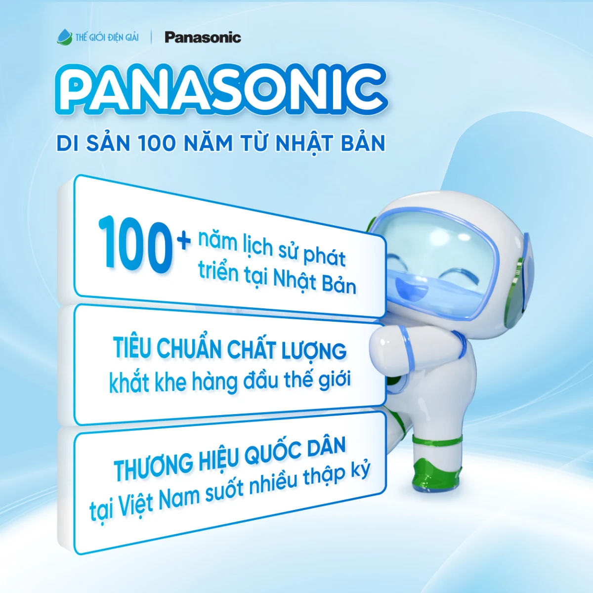 Panasonic là thương hiệu hơn 100 năm tuổi đến từ Nhật Bản, gắn liền với triết lý sản xuất khắt khe, đề cao độ bền, tính ổn định và sự an toàn lâu dài. Tại Việt Nam, Panasonic được xem là thương hiệu quốc dân trong lĩnh vực thiết bị gia dụng và điện tử, xuất hiện bền bỉ trong nhiều thập kỷ và tạo dựng niềm tin vững chắc với hàng triệu gia đình.