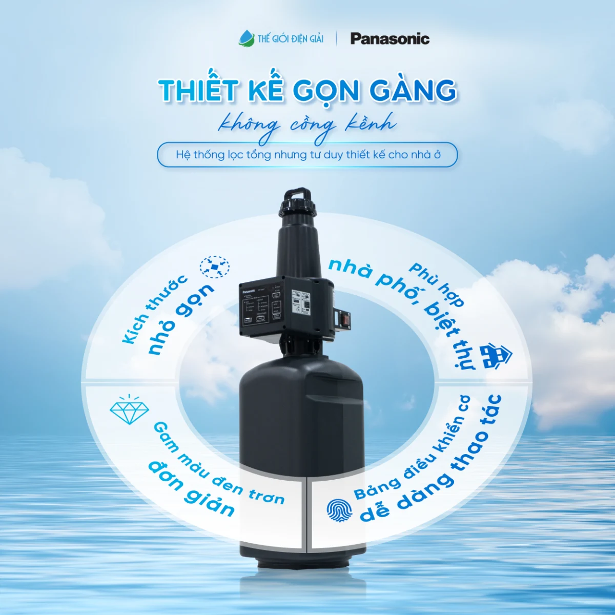 Panasonic FP-15AA1 được phát triển theo triết lý thiết kế chuẩn Nhật: Gọn – Thông minh – Hiệu quả, giúp giải quyết bài toán không gian mà nhiều hệ thống lọc tổng thường gặp. Phù hợp nhiều mô hình nhà ở: