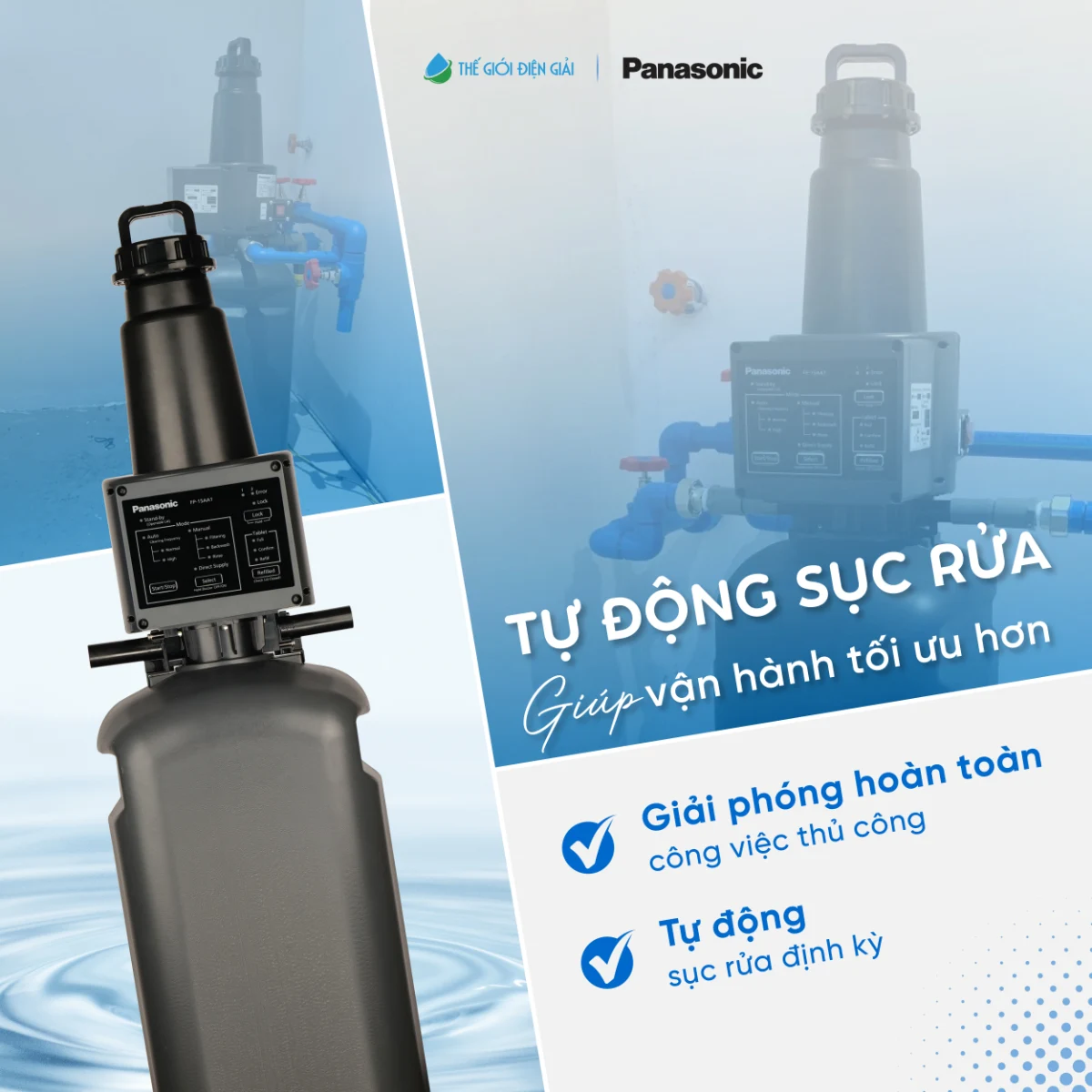 Nhiều hệ thống lọc nước đầu nguồn nhanh xuống cấp do sục rửa thủ công không đúng chu kỳ, khiến vật liệu lọc tích tụ cặn và giảm hiệu quả xử lý. Panasonic FP-15AA1 khắc phục triệt để nhờ cơ chế tự động sục rửa hoàn toàn, được lập trình tối ưu theo thời gian sử dụng.