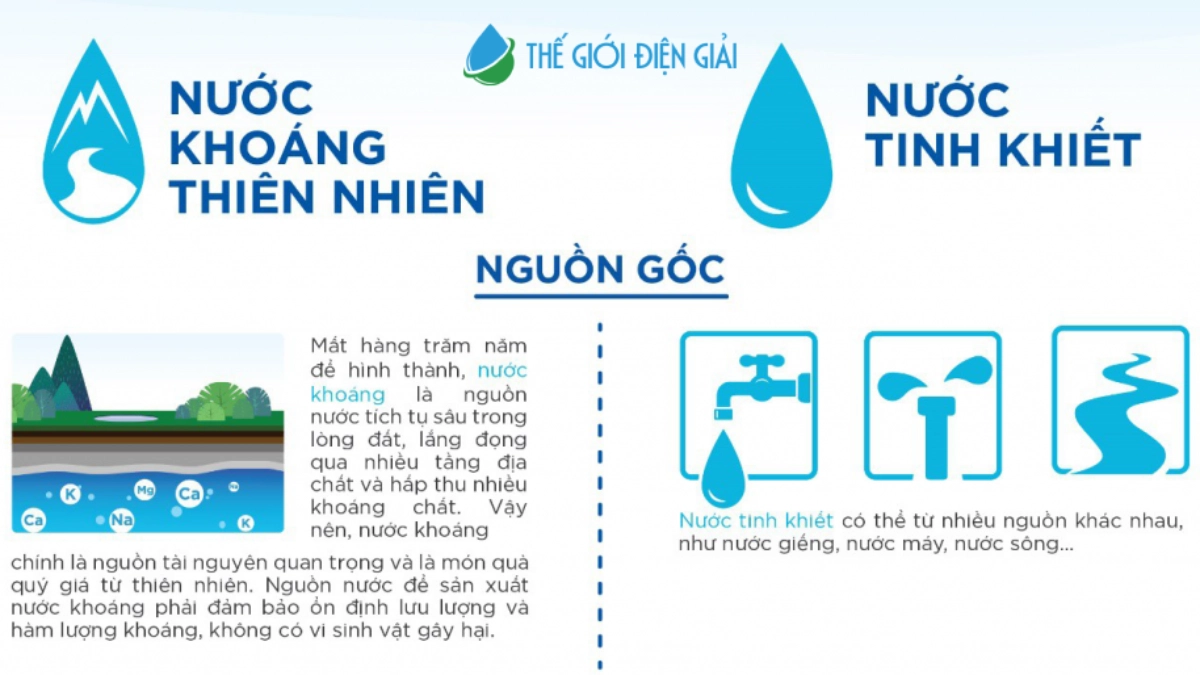 Khác biệt cơ bản nước tinh khiết và nước khoáng