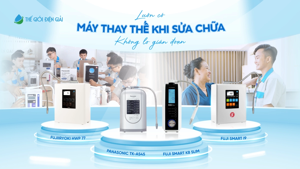 Một trong những điều khiến khách hàng yên tâm nhất khi chọn mua máy lọc nước iON kiềm tại Thế Giới Điện Giải là chính sách “luôn có máy thay thế khi sửa chữa”. Đây không chỉ là một cam kết dịch vụ, mà còn là giải pháp thực tế giúp khách hàng luôn duy trì được nguồn nước tốt, không bị gián đoạn trong bất kỳ tình huống nào.