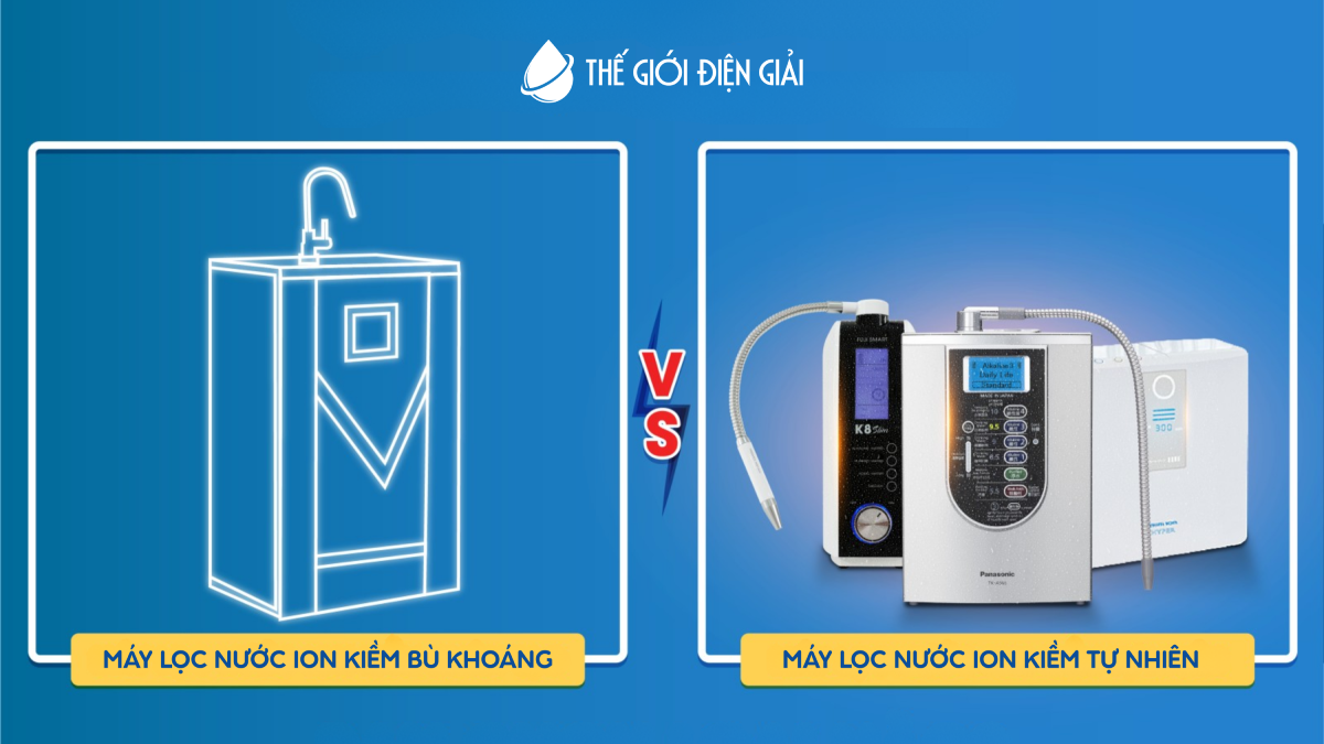 Bảng so sánh sự khác biệt giữa nước ion kiềm tự nhiên và nước ion kiềm bù khoáng: